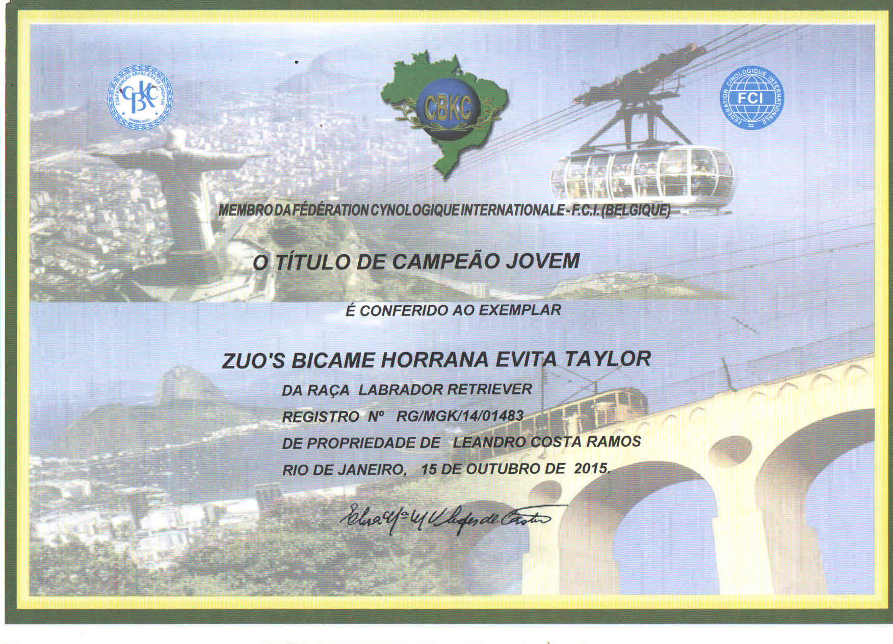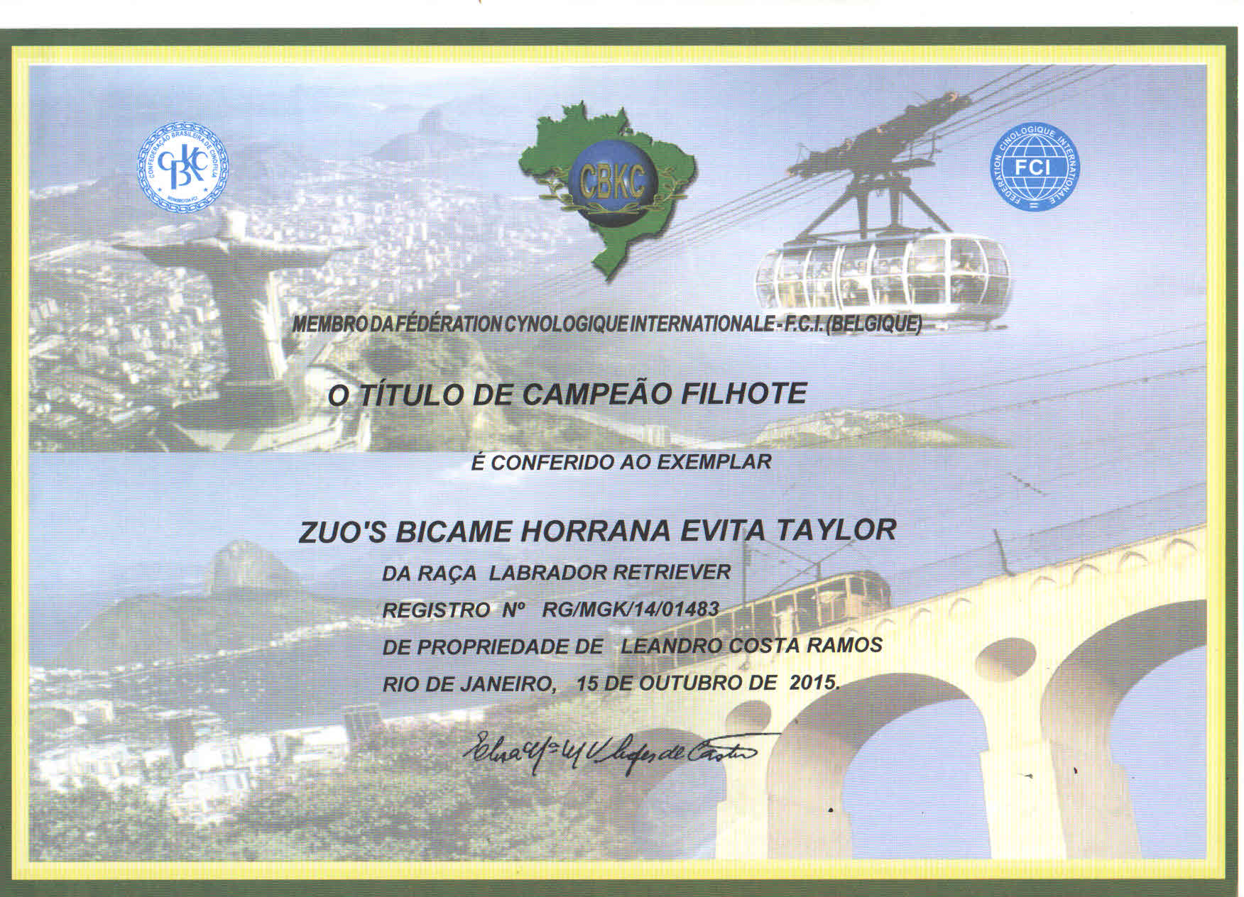 3rd in Group at FMC 2nd Pan-American Show judged by Dino Miraglia Filho - BRAZIL 08/23/2014