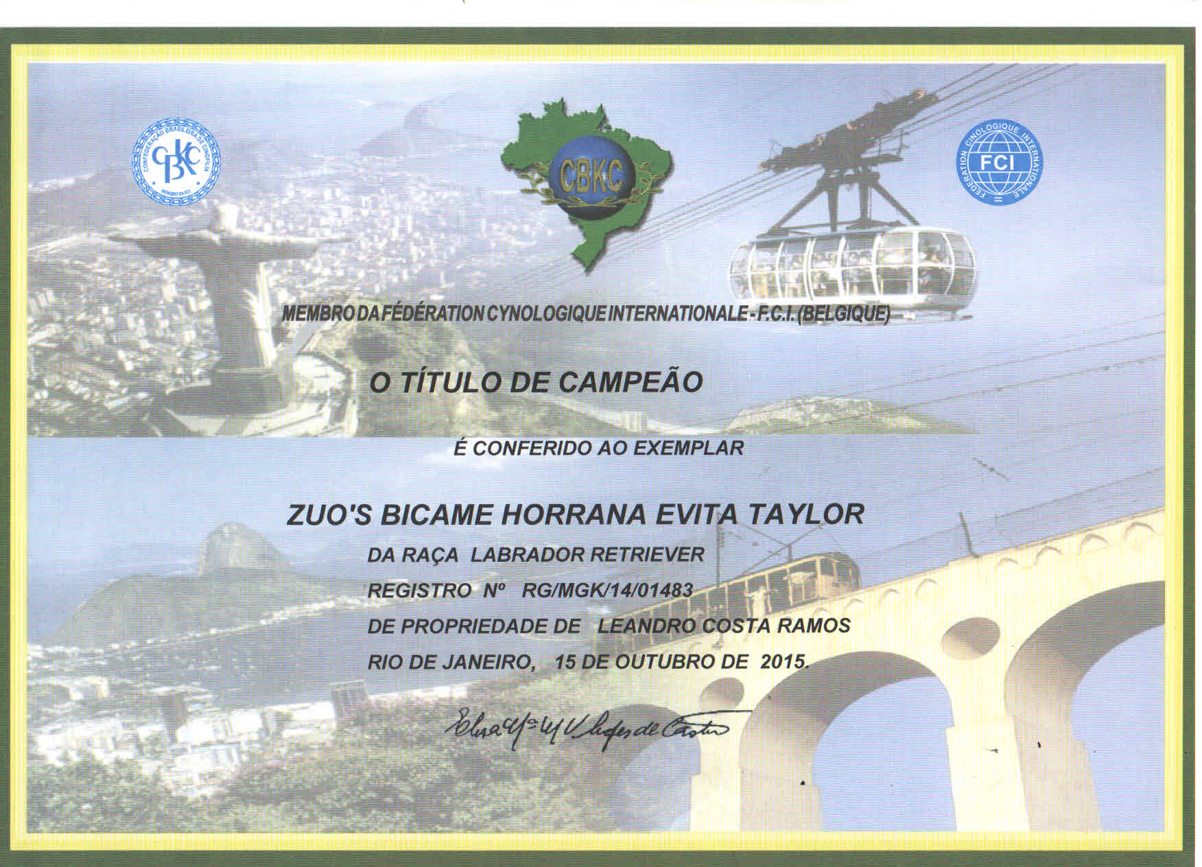 1st in Championship Class at KCGBH Pan-American Show judged by José Dione O. Fernandes / Paulo da Mata - 10/24/2015